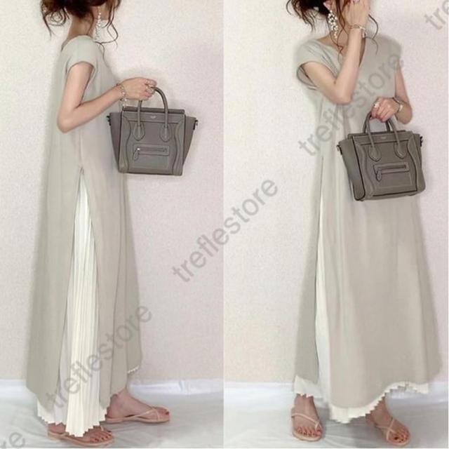 【ポイント5倍!】ワンピース レディース マキシワンピース 可愛い きれいめ 上品 ゆったり 半袖ワンピース ロングワンピース ベージュ ホワイト フリーサイズ 30代40代50代