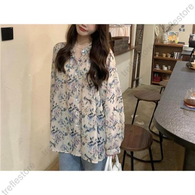 シャツ ブラウス レディース 40代 50代 きれいめ 春 夏 秋 春夏 フォーマル おしゃれ 春コーデ 春物 春服 夏物 夏服 服装 花柄 立ち襟 スタンドカラー バンドカラー 長袖 パフスリーブ バルーンスリーブ 前開き ボタン留め シフォン とろみ トップス シアーシャツ 大きいサイズ オーバーサイズ 韓国ファッション 通勤 オフィス 上品 カジュアル 結婚式 オケージョン 婦人服 ミセス 20代 30代 60代