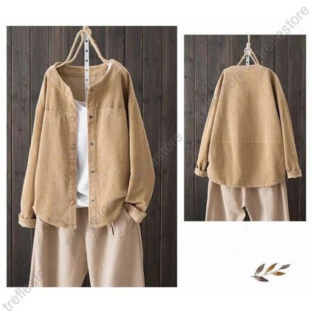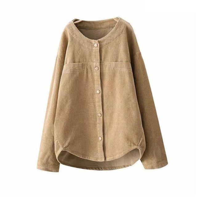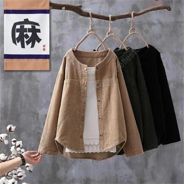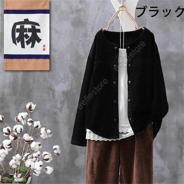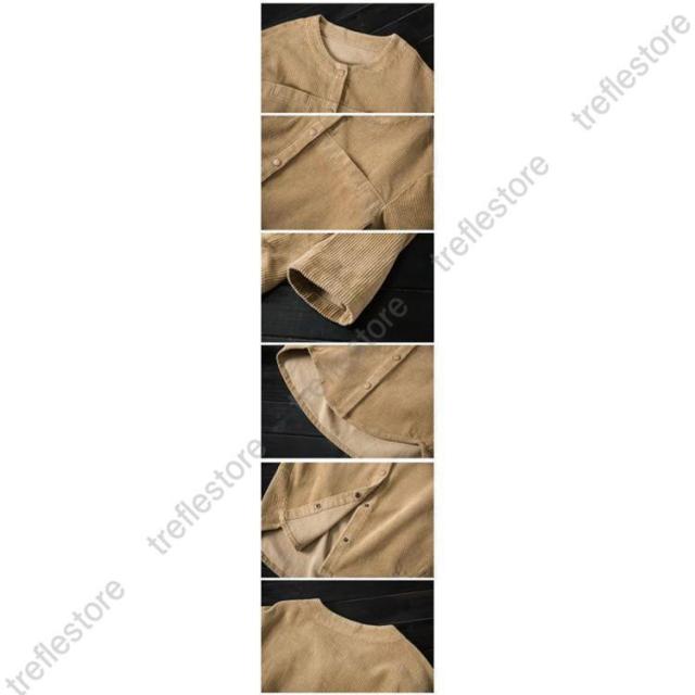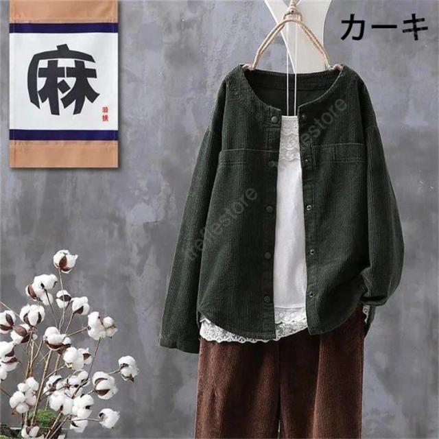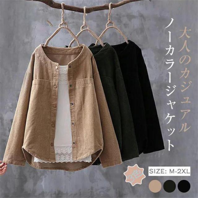 ノーカラー ジャケット レディース コーデュロイ アウター コート 長袖 ノーカラージャケット ショート丈 コート 無地 シンプル ゆったり 大きいサイ