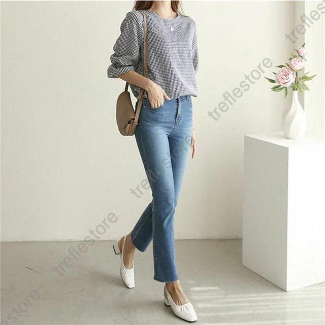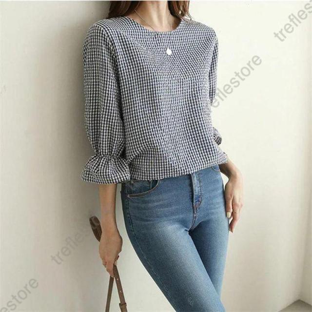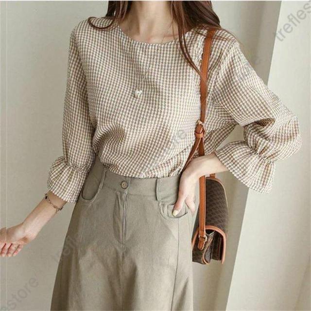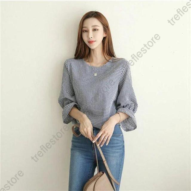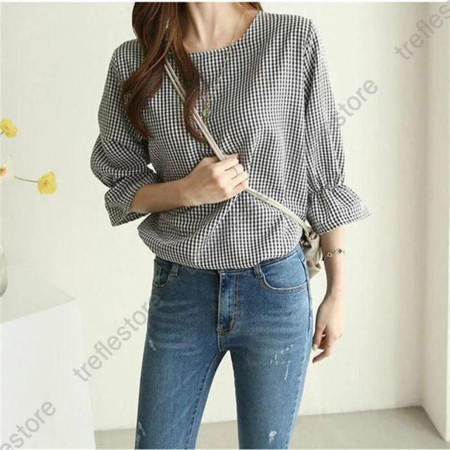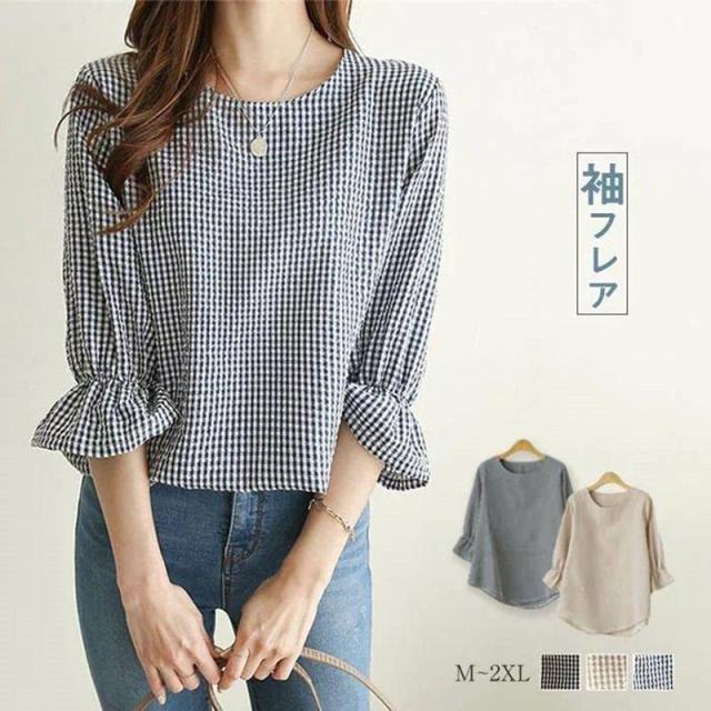 キーワード ギンガムチェック ブラウス レディース おしゃれ 春 夏 トップス カジュアル きれいめ 七分袖 袖フリル tシャツ レディース チェック柄 ブラウス エレガント シャツ フォーマル 春 女性らしい ゆったり 秋 ファッション 通勤 体型カバー 可愛い ガーリー 20代 30代 40代