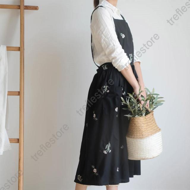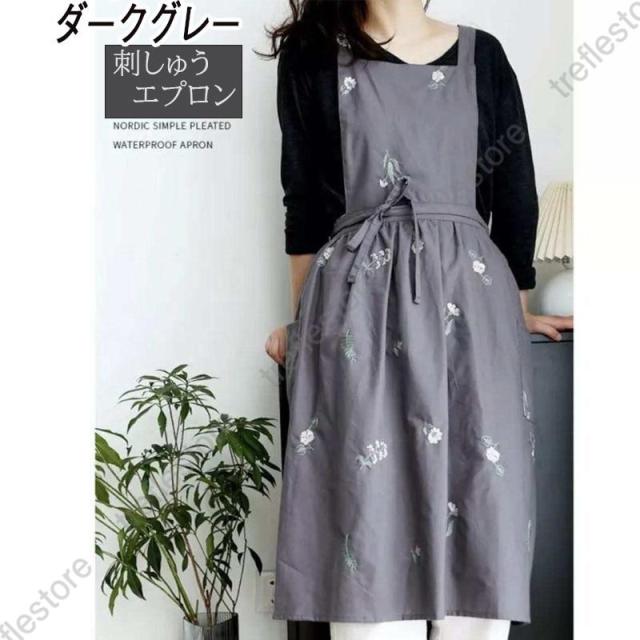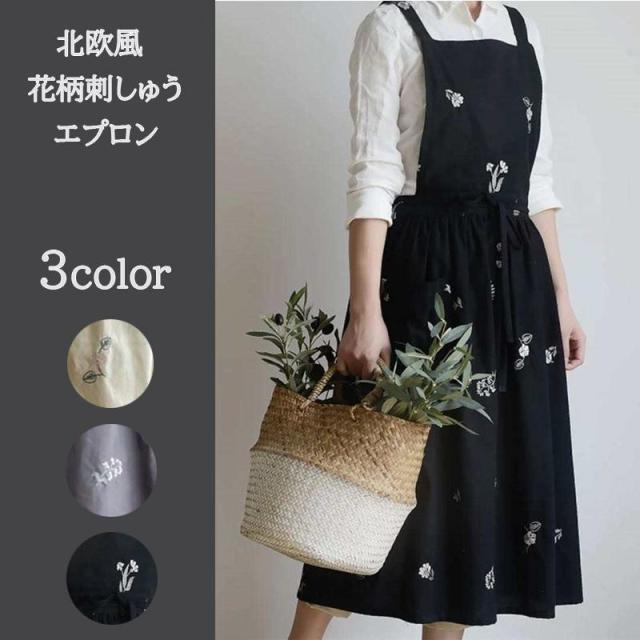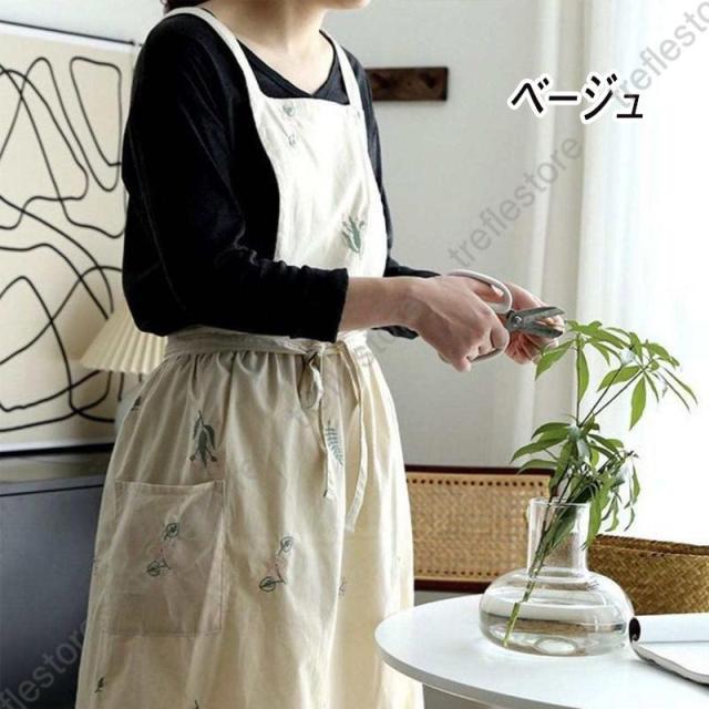 【ポイント5倍!】エプロン 刺繍 通販 花柄 北欧 撥水 刺繍エプロン Aラインエプロン ゆったり 柔らかい かわいい おしゃれ 綿 作業用 母の日 敬老の日 ギフト プレゼント