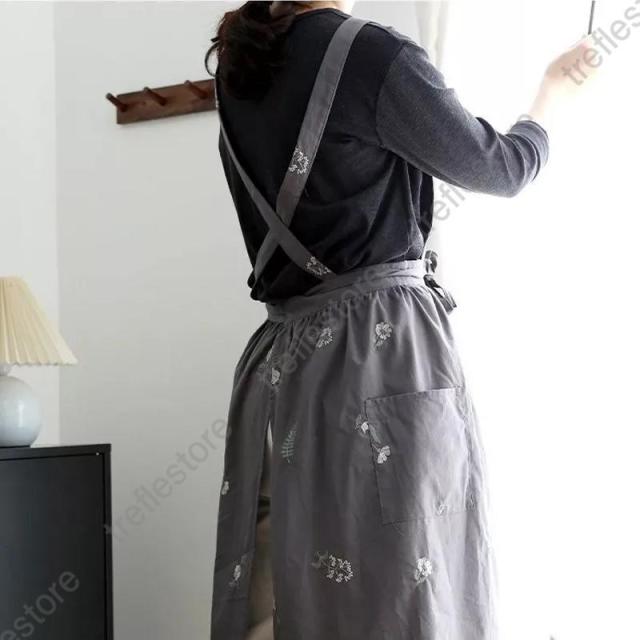 花柄刺しゅう エプロン