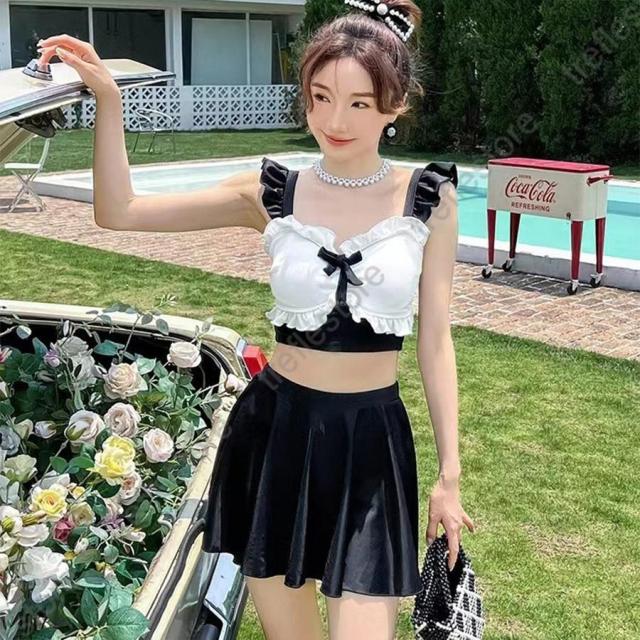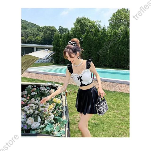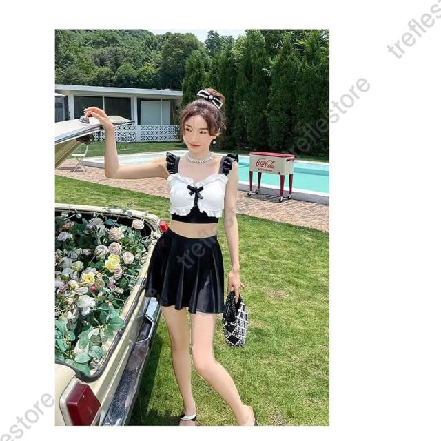 【ポイント5倍!】水着 ビキニ レディース おしゃれ スカート ショートパンツ ママ 黒 キャミソール チュール生地 バックリボン 露出控えめ