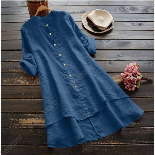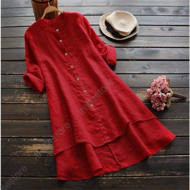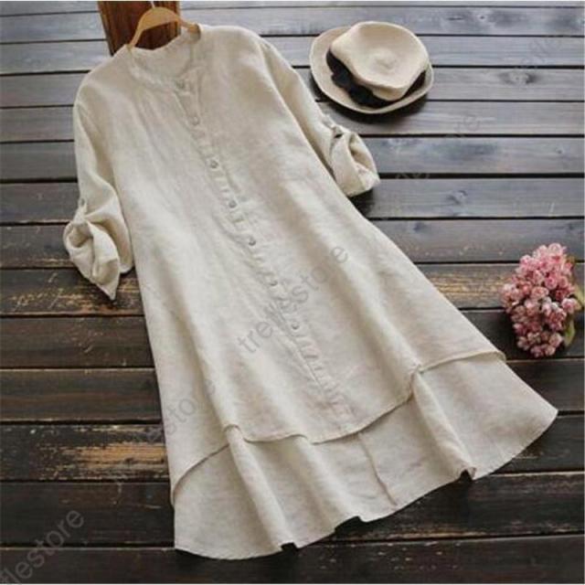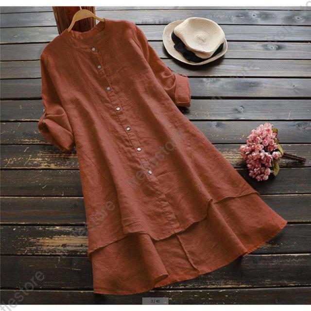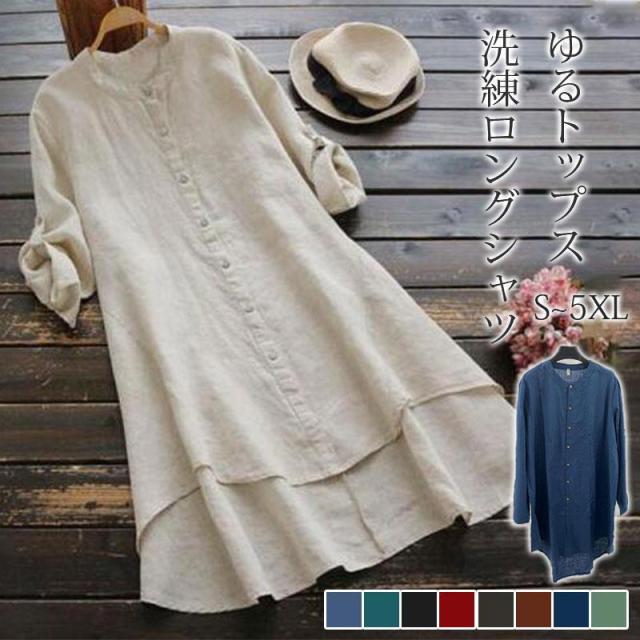 【ポイント5倍!】チュニック ワンピース 膝丈 ブラウス シャツ tシャツ ワンピース チュニックワンピース レディース 夏 ロング トップス 綿麻