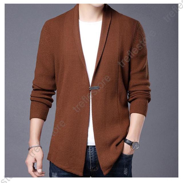 【ポイント5倍!】カーディガン メンズ ニットカーディガン 折り襟 セーター 前開き 秋冬 薄手 トップス ルームウェア 着痩せ 防寒 オフィス 肩掛け シンプル 韓国