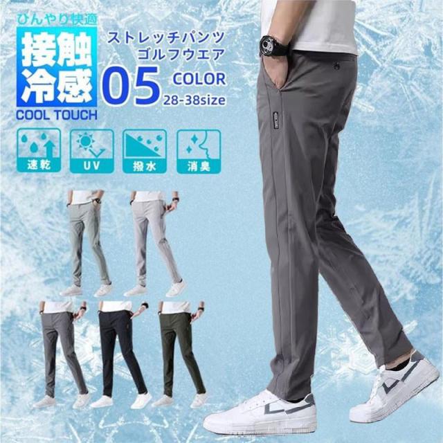 【ポイント5倍!】ゴルフウェア メンズ パンツ 夏用パンツ ゴルフパンツ 冷感パンツ 薄手 夏物 ズボン チノパン メンズ ゴルフパンツ 涼しい ストレッチ チノパン 父の日 無地