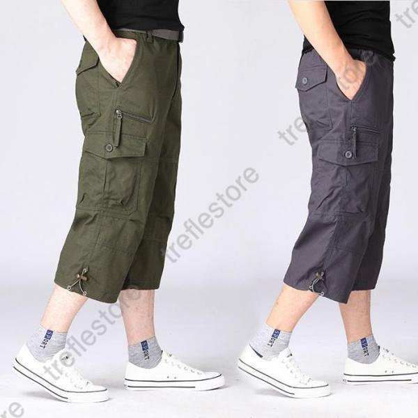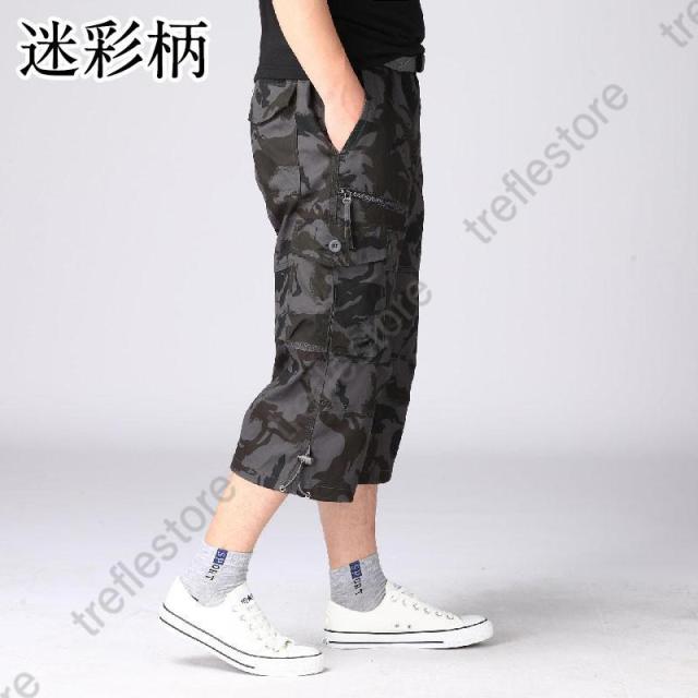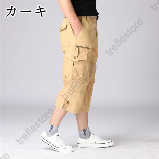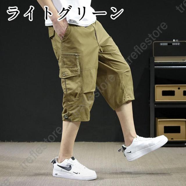 カーゴパンツメンズ ハーフパンツ ひざ下 カーゴパンツ 7分丈 スポーツ 太め ゆったり 夏 クロップド 大きいサイズ 父の日