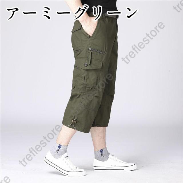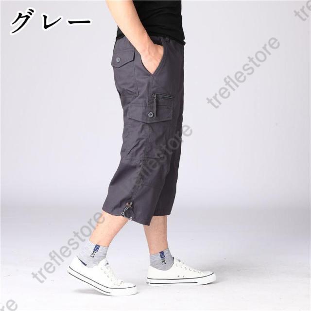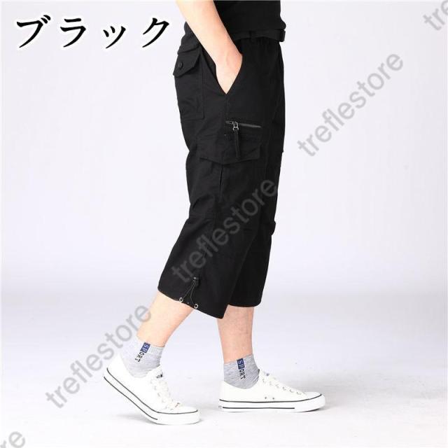 【ポイント5倍!】カーゴパンツ メンズ ハーフパンツ ひざ下 カーゴパンツ 7分丈 スポーツ 太め ゆったり 夏 クロップド 大きいサイズ 父の日