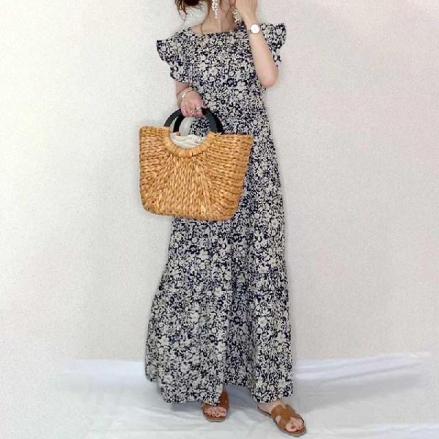 【ポイント5倍!】ワンピース 半袖 花柄ワンピ 薄手 ロング丈 スリム 可愛い Aラインワンピース 夏ワンピース レディース 花ワンピース 大人 涼しい 着痩せ