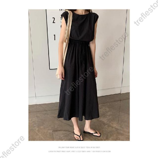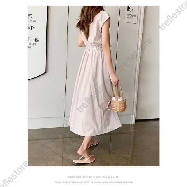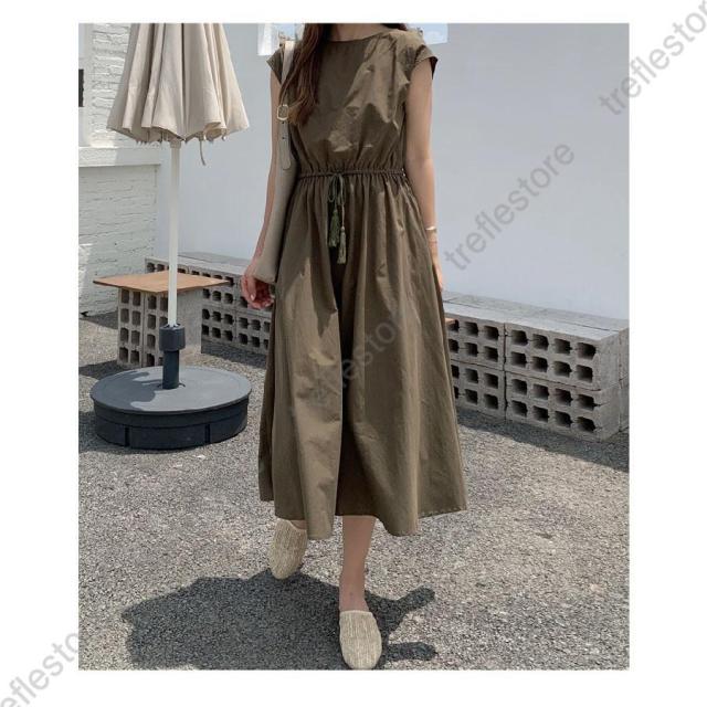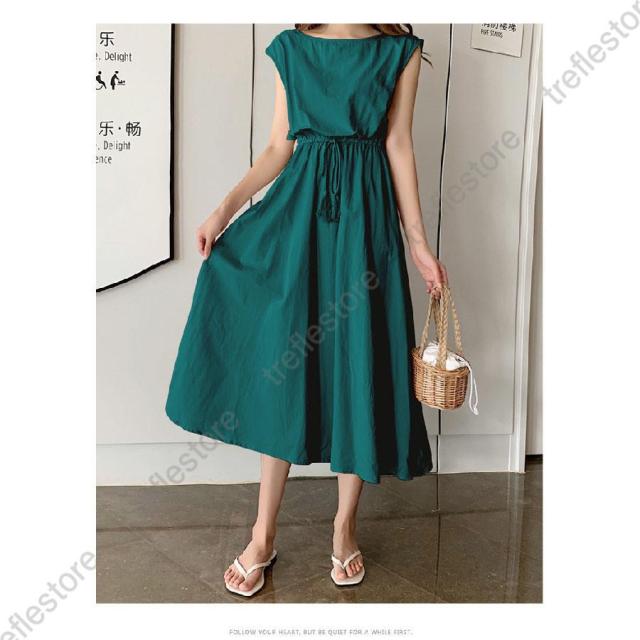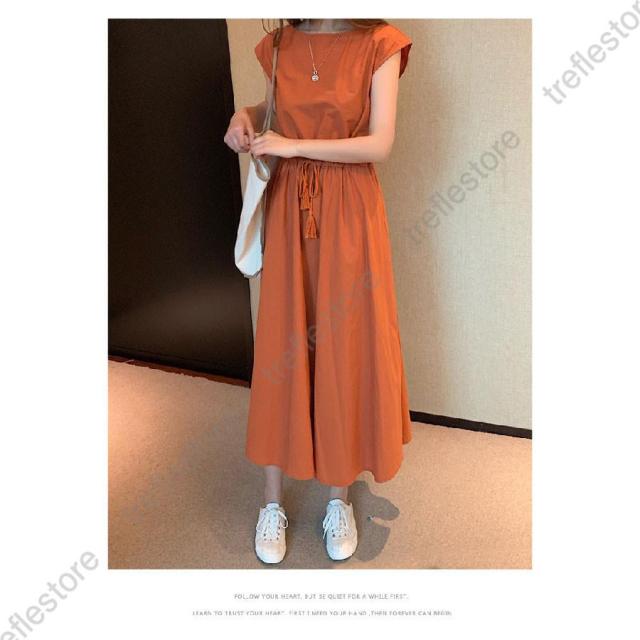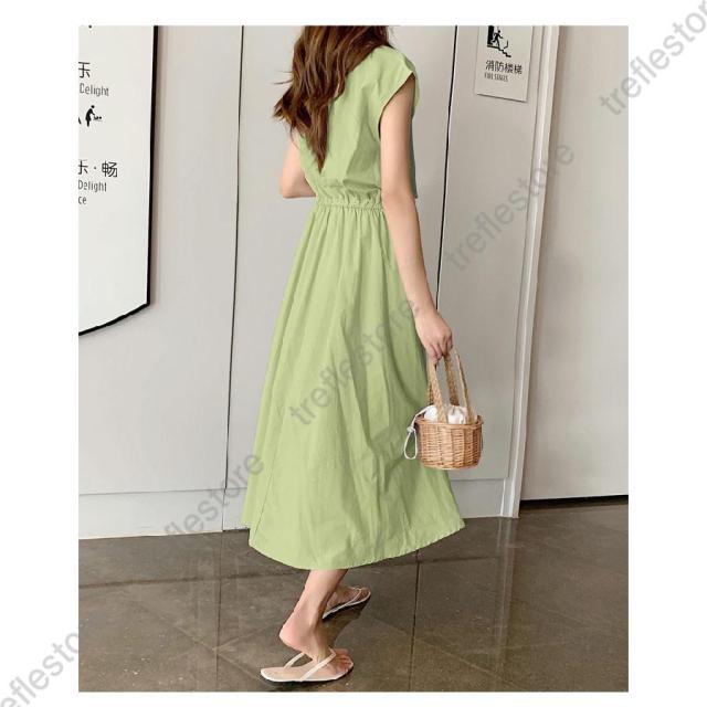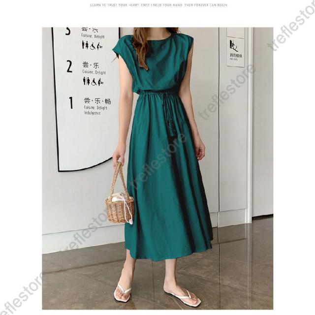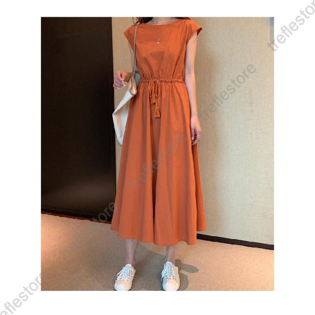 【ポイント5倍!】夏ワンピース 半袖 涼感 フレアワンピース 可愛い ロングワンピース ミモレ丈 大人 30代40代 オフィス お出かけ 無地 フェミニン スリム リネン 裏地付き