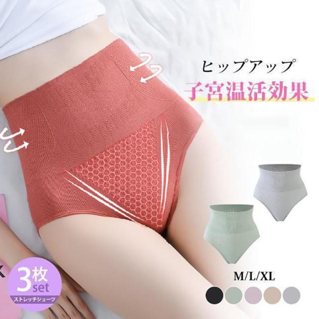 【ポイント5倍!】3点セット ショーツ ハイウエスト パンツ 下着 冷え症対策 腹巻き ストレッチ インナー 深ばき 子宮温活 3D構造 おなかすっぽり 引き締め