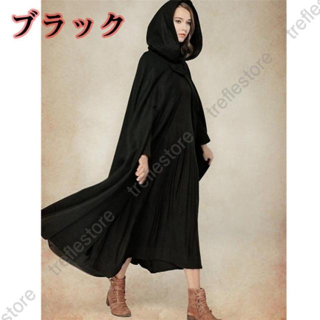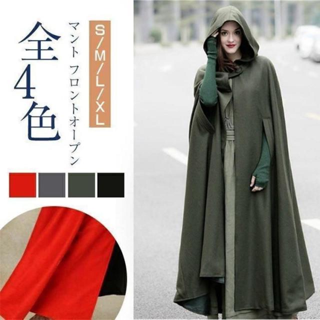 マント レディース マント コート ロング 秋冬 マント フロントオープン 女性 トレンチコート ケープ コート ロングコート フード付き ケープ ロングショール ファンシー 無地 オーバー ウインドブレーカー 開襟 ファッション ゆったり 大きいサイズ