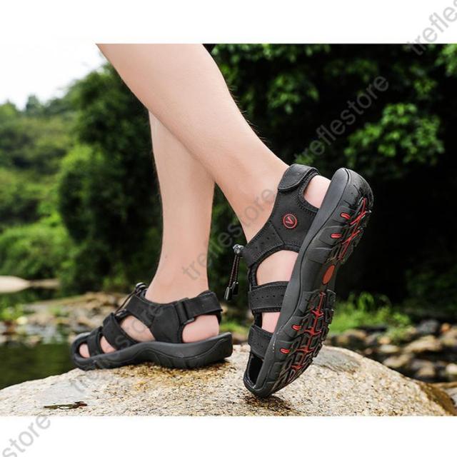 【ポイント5倍!】新作 本革 ビーチサンダル メンズ 2way つま先保護 滑り止め 痛くない スポーツサンダル 登山サンダル レザーサンダル 歩きやすい スリッパ 紳士用 父の日