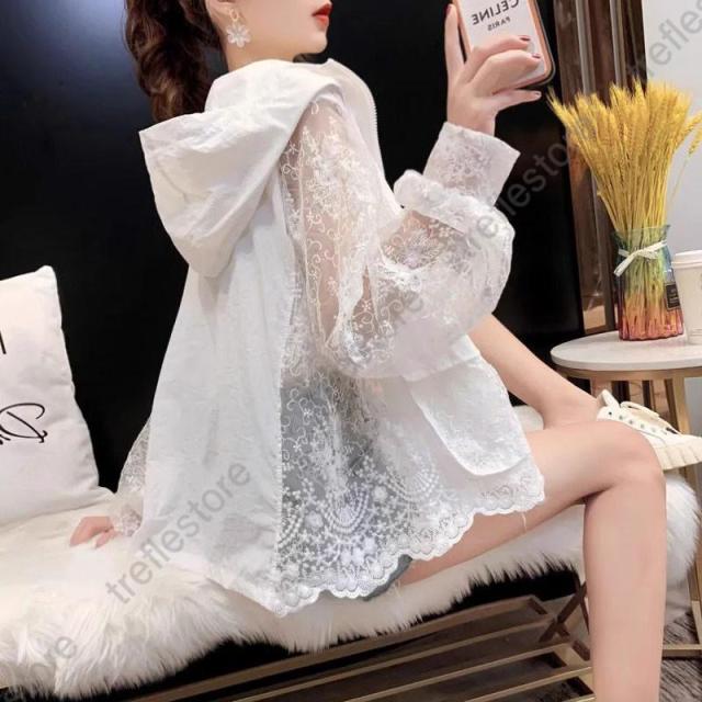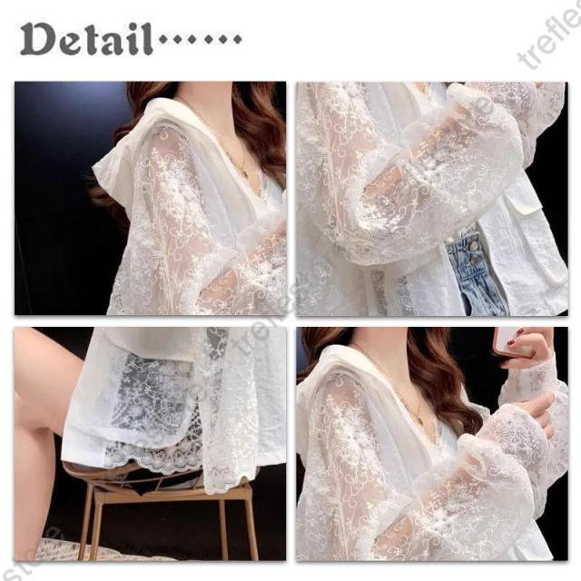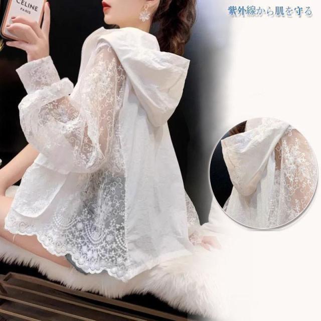 【ポイント5倍!】ラッシュガード レディース UVカット レース パーカー トップス ロングシャツ 紫外線対策 花柄 透け感 ゆったり 立ち襟 着痩せ 長袖 海遊び