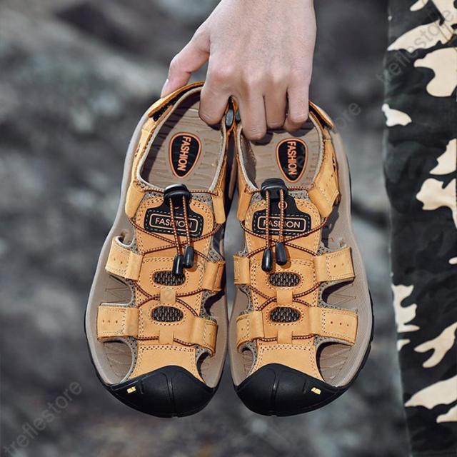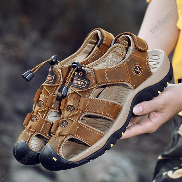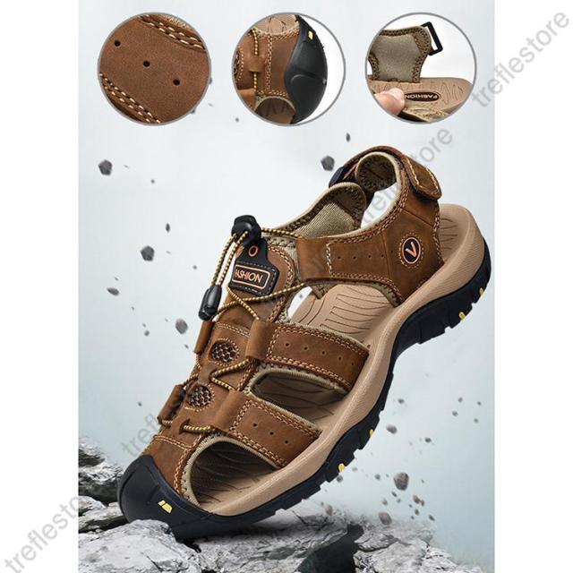 通気性を重視ため、アッパーは水や汚れに強い牛革を採用し、排水でき、蒸れにくく通気性が優れ。