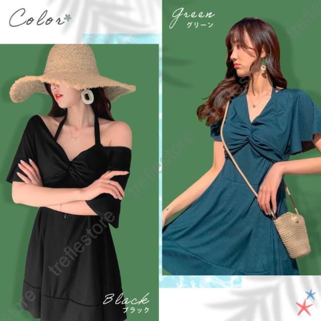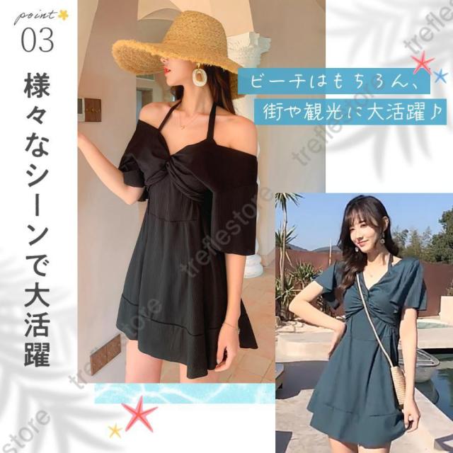 オフショルダー部分は肩まで上げることが出来るため、しっかり日焼け対策もして頂けます