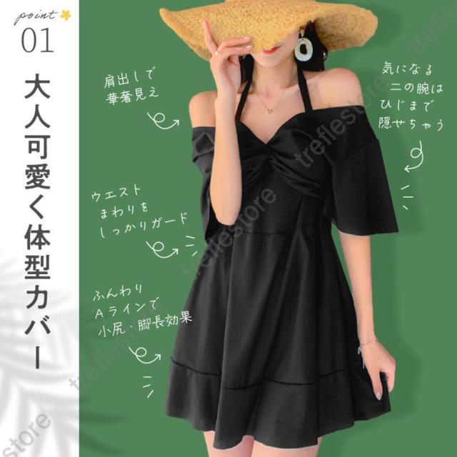 肩が出るデザインで華奢見えに加え、ウエスト周りをしっかりガードする事で
