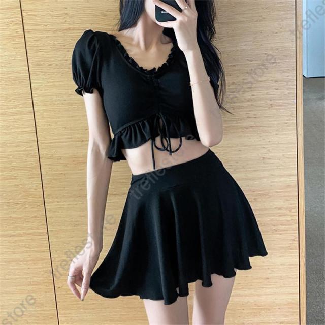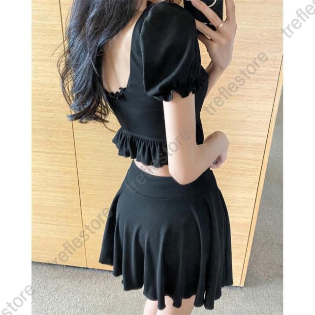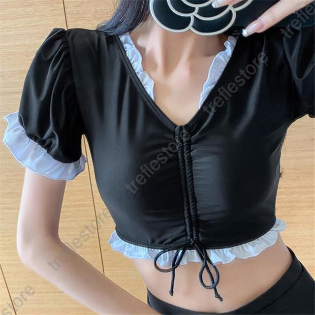 【ポイント5倍!】水着 レディース 体型カバー 半袖 2点セット タンキニ リゾート フィットネス スポーツ セパレート ビーチ プール ジム運動用 スイムウェア 30代 40代