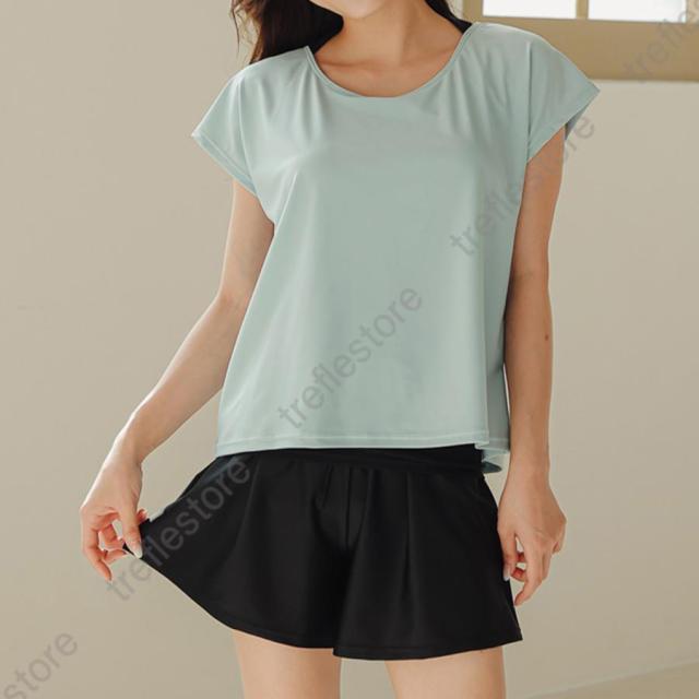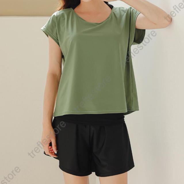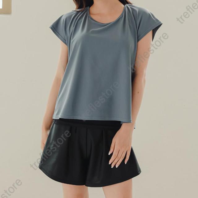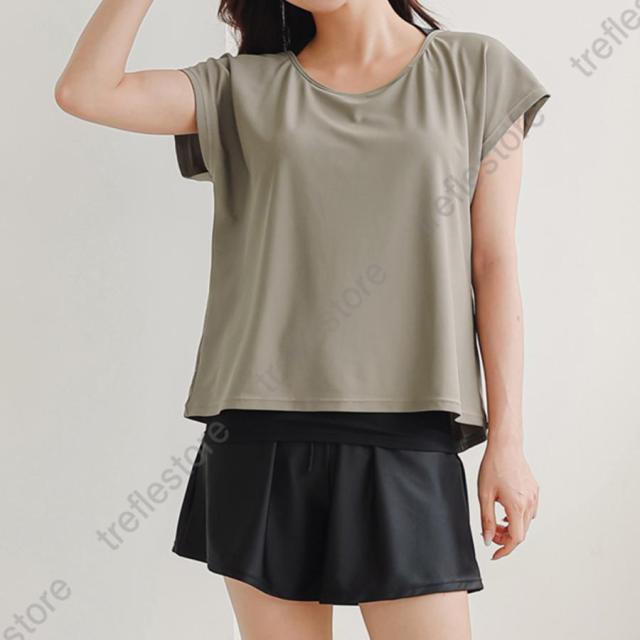 水着 レディース 体型カバー ママ水着 セパレート 大きいサイズ レイヤード風 半袖ラッシュガード ショートパンツ 2点セット