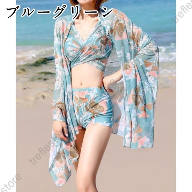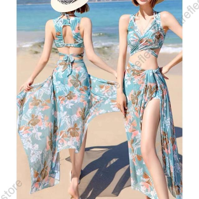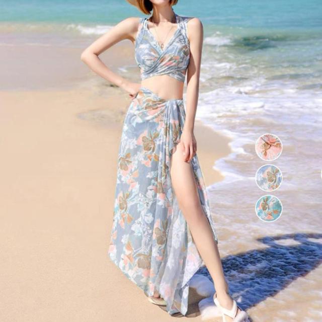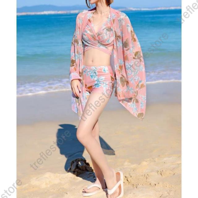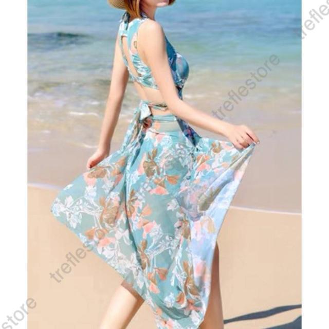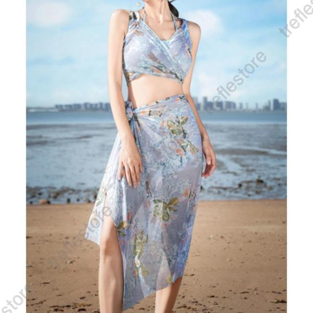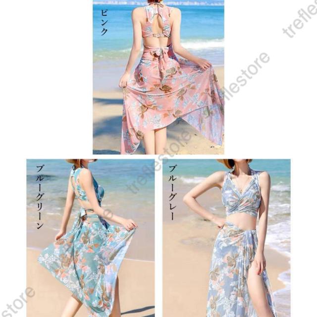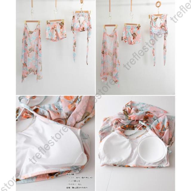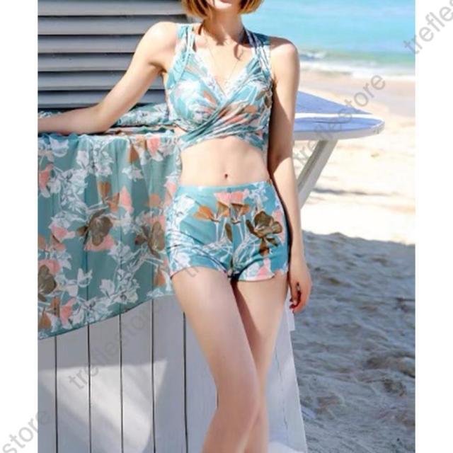 【ポイント5倍!】夏 タンキニ 水着3点セットパレオ付き 韓国