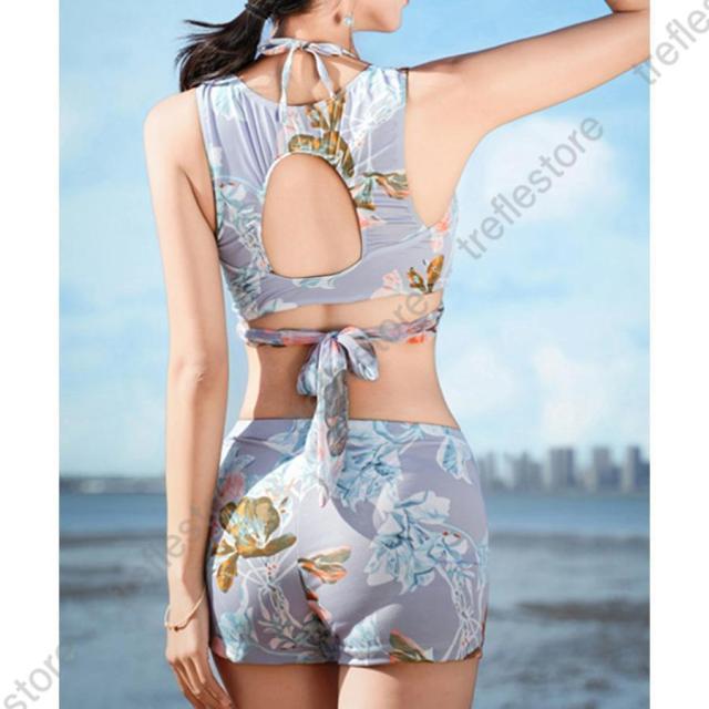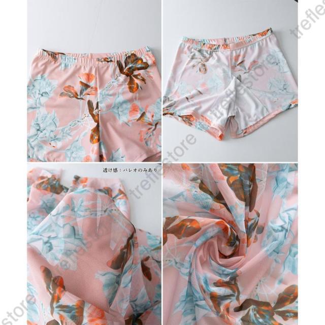 花柄水着セット ホルターネックタンキニ ボクサーパンツ 巻きスカート 体型カバー水着 セパレート 大人可愛いスイムウエア