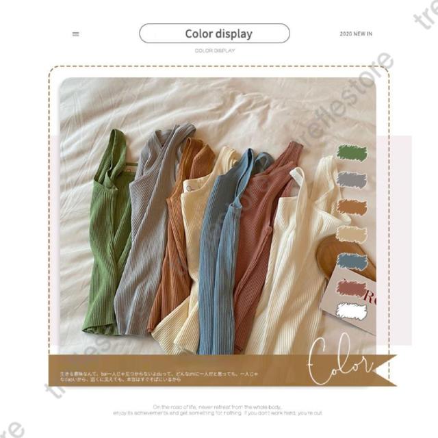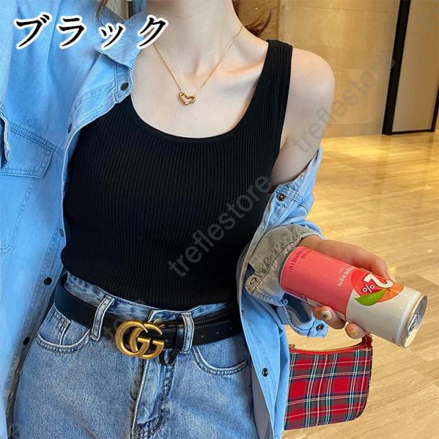 レディース サマーニット カジュアル ショート丈 ニットベスト 春夏秋 ノースリーブニットカットソー 韓国ファッション 袖なし 無地 レディースニット ニットタンク ストレッチタンクトップ レディースタンク タンクトップ Uネックニットリブタンクトップ 夏ニット ストレッチトップス