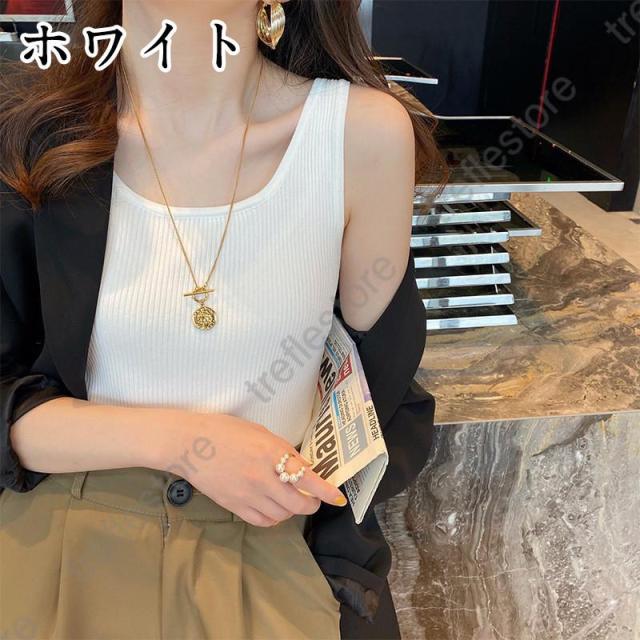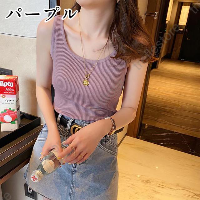 【ポイント5倍!】ニット 9色 タンクトップ レディーストップス 夏服 ノースリーブ リブニット サマー ストレッチ 春 サマーニット 無地 リブニットタンク カップなし 袖なし
