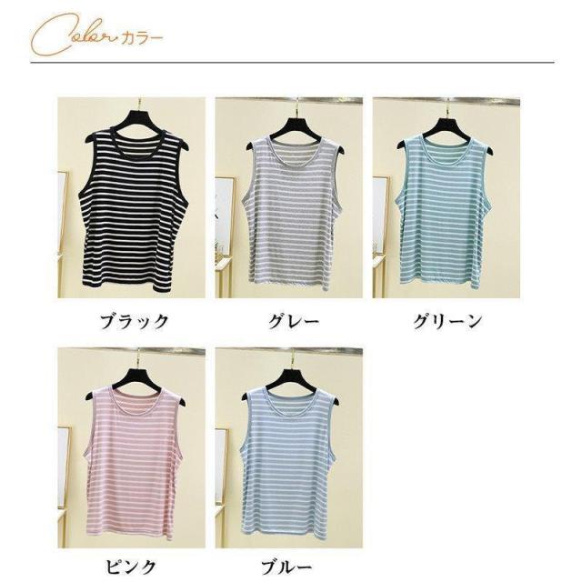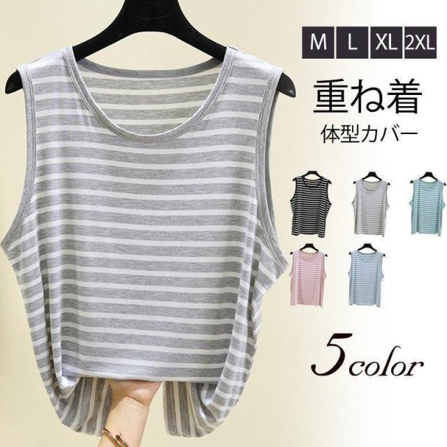 【ポイント5倍!】タンクトップ レディース ノースリーブ ストライプ トップス Tシャツ ゆったり 薄手 重ね着 体型カバー 通勤 体型カバー 可愛い お洒落