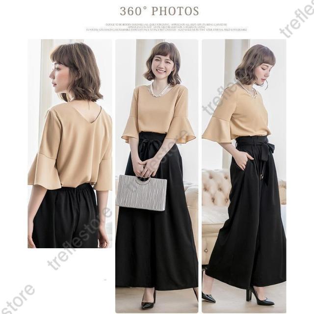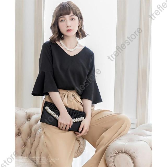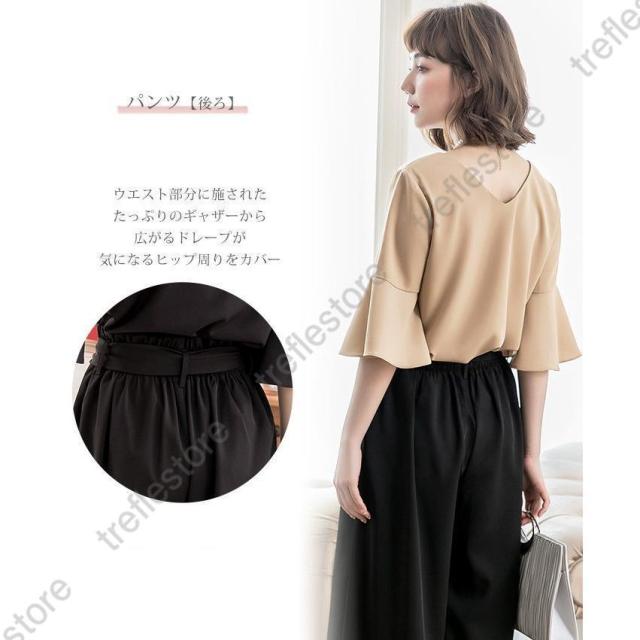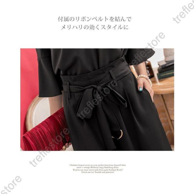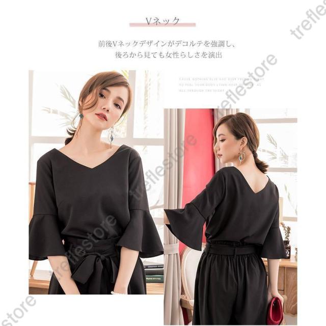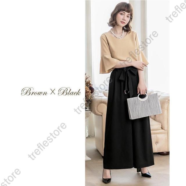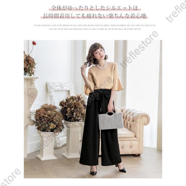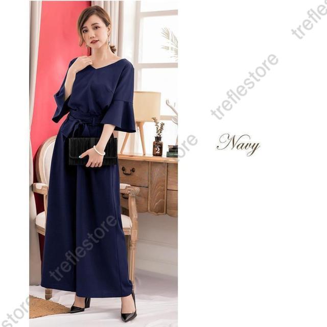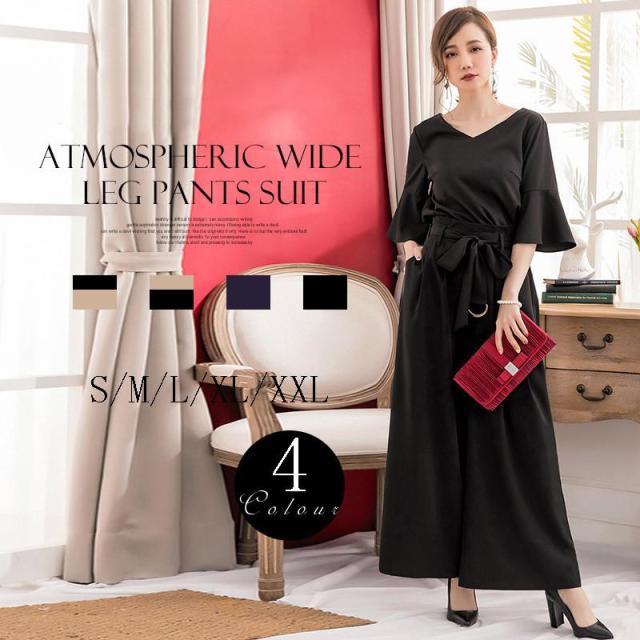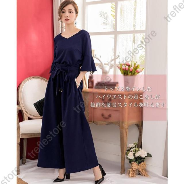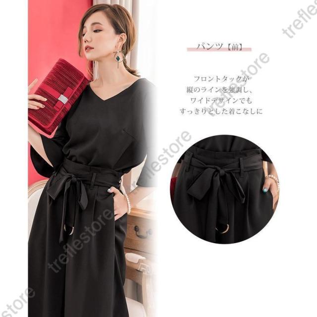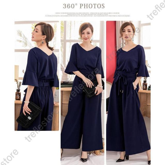 【ポイント5倍!】パンツドレス 結婚式 袖あり 大きいサイズ レディース ワイド パーティードレス 半袖 パンツスタイル セットアップ セットアップ 体型カバー 卒業式 卒園式