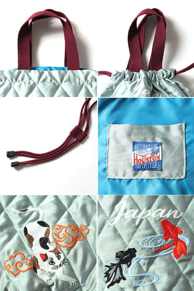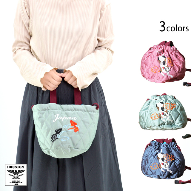 サテンエフェクトバッグ「CAT」 HOUSTON レディース 6007W ヒューストン かばん ネコ 猫 金魚 刺繍