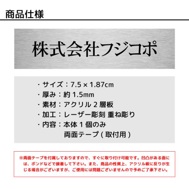 社名プレート 7.5×1.87cm サインプレート 表札26 宅配ボックス マンション 戸建 シール ポスト ドアプレート 新築 郵便受け レーザー加工 彫刻 order-made-plate-comp01