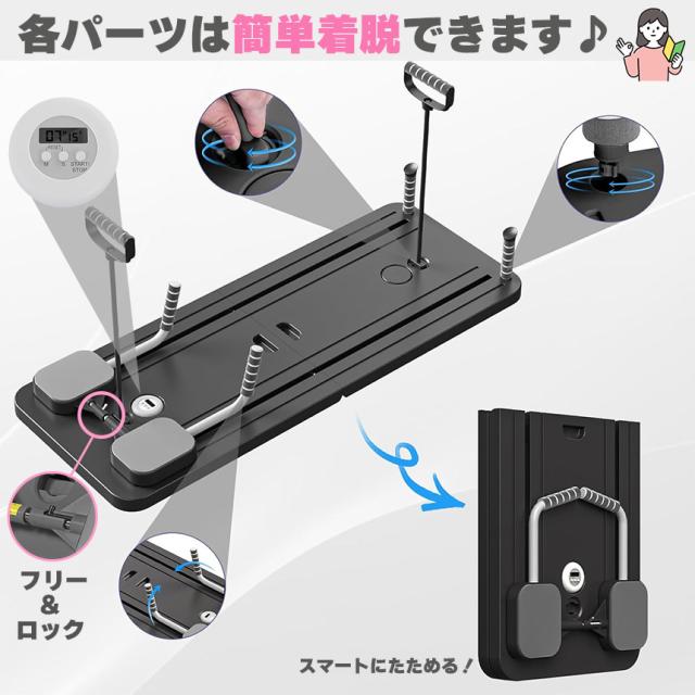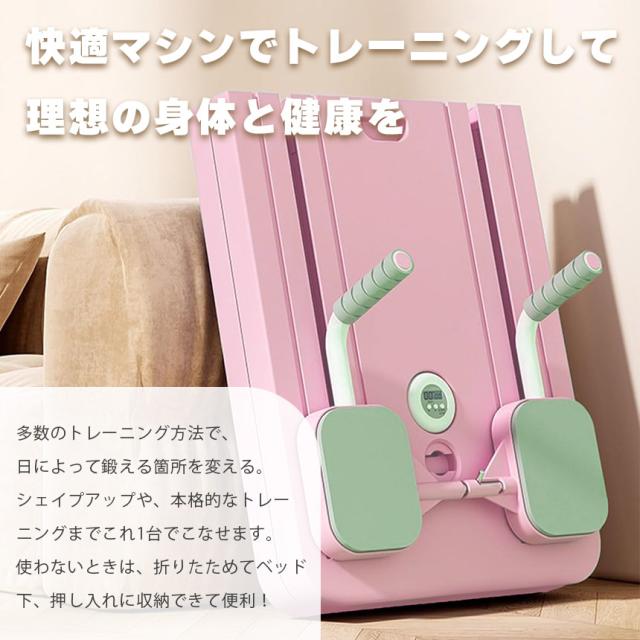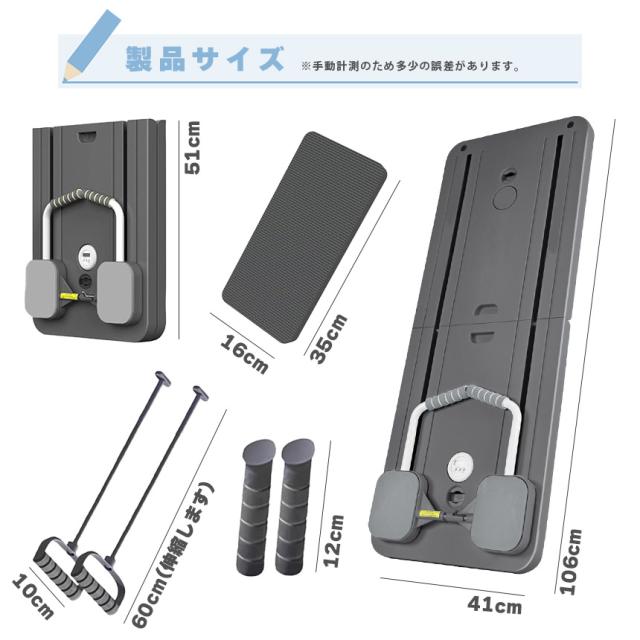 『自宅をホームジムに!』◎快適トレーニングマシン◎【効果的で快適なトレーニング】自動リバウンド技術を採用していて、動作が滑らかで効果的です。反発力も強力で、余計な負担も少なくインナーマッスルも効率的に鍛えられます。フィットネスの初心者からアスリートまで、幅広くご使用することができ、理想の体型や健康のためのサポートをします。【サイズ】・約106x41cm(展開時)・約51x41cm(折り畳み時)・重量:約4.8kg1セットの内容・マシン本体x1・ハンドル付きゴムバンドx2・ハンドルx2・スマートタイマーx1・膝パッドx1