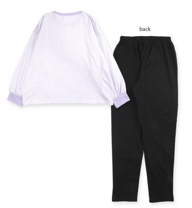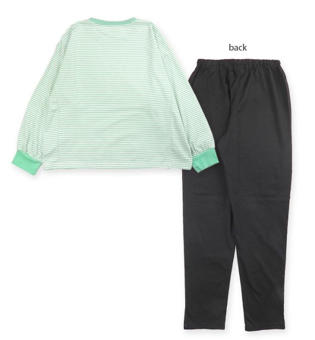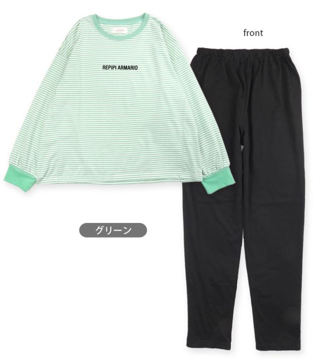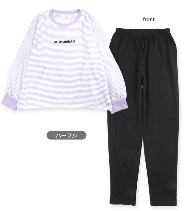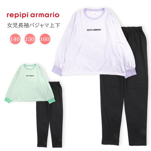 【メール便送料無料】repipi armario パジャマ 上下セットアップ キッズ ジュニア 女の子 レピピアルマリオ 140 150 160 76323LH パープル グリーン ブラック 長袖 長ズボン ロングパンツ プルオーバー 部屋着 女児 幼児 子供 子ども ボーダー柄 無地 紫 緑 黒 9940