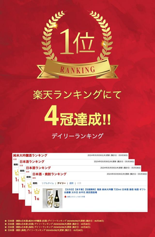 【包装無料】瑞泉 純米大吟醸 720ml 日本酒 鳥取 地酒 ギフト お歳暮 父の日 高田酒造場