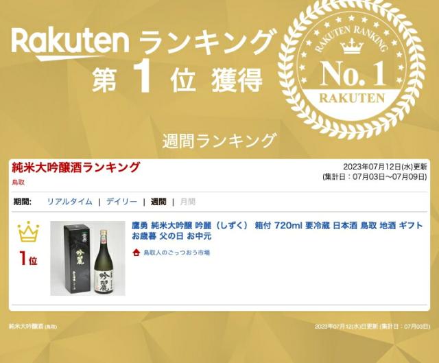 鷹勇 純米大吟醸 吟麗(しずく) 箱付 720ml 要冷蔵 日本酒 鳥取 地酒 ギフト お歳暮 父の日 お中元 大谷酒造