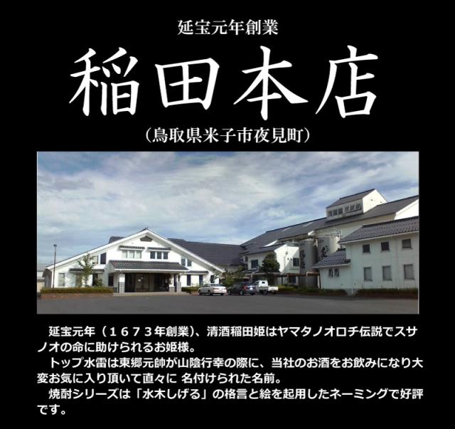 稲田本店で使用する仕込み水は山陰エリア最高峰の「大山」の湧水を使用しています。「大山」につもった雪は、深い森によって大量に蓄えられ、地下深く浸透した後、長い年月を経て湧水となります。弱軟水のその水質は、稲田本店の淡麗で辛口な酒の味わいの源となります。お酒は水が命。340年の稲田本店の暖簾を守ってくれる大切な水です。