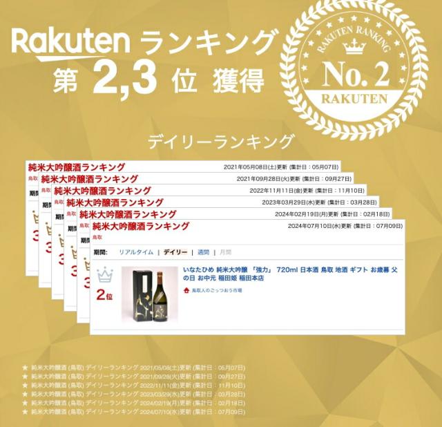 いなたひめ 純米大吟醸 「強力」 720ml 日本酒 鳥取 地酒 ギフト お歳暮 父の日 お中元 稲田姫 稲田本店
