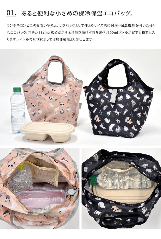 メール便送料無料 プチ保冷コンパクト 【 保冷 保温 エコバッグ 折りたたみ マチ広 小さめ ファスナー コンビニ コンパクト 軽量 ナイロン 保冷バッグ アニマル ネコ 猫 ランチバッグ ランチトート 弁当袋 馬 洗える レディース メンズ おしゃれ かわいい】