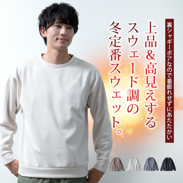 トレーナー メンズ 暖かい 裏シャギー クルーネック スウェット 秋冬 フェイクスウェード おしゃれ シャギー スエード メンズファッション トップス 無地 ゆったり スミクロ 部屋着 全4色 ベージュ 秋 ルームウェア アメカジ プレゼント