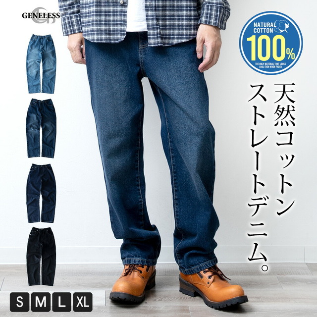 ジーパン メンズ デニムパンツ アメカジ 綿100 ストレート ゴムウエスト デニム パンツ ジーンズ おしゃれ Gパン ゆったり 太め コットン ギフト リジット