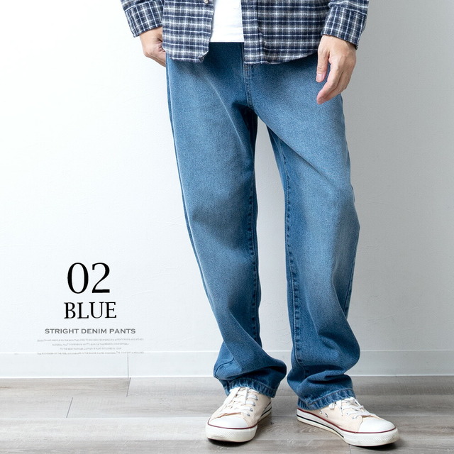 ジーパン メンズ デニムパンツ アメカジ 綿100 ストレート ゴムウエスト デニム パンツ ジーンズ おしゃれ Gパン ゆったり 太め コットン ギフト リジット 大きいサイズ 全4色 綿 シンプル バックシャーリング 無地 ブルー オールシーズン