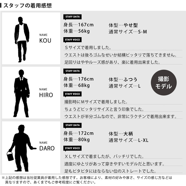 | サイズ | ウエスト | 股上 | 股下 | もも幅 | 裾幅 |