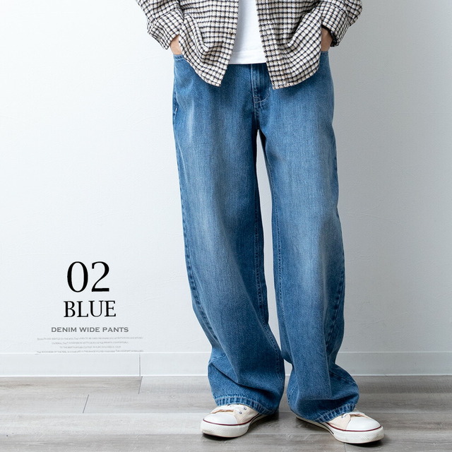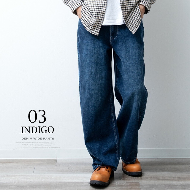 デニムパンツ メンズ ワイドパンツ ゆったり 綿100 ワイド ストレート ゴムウエスト ジーパン デニム メンズファッション おしゃれ ジーンズ バックシャーリング