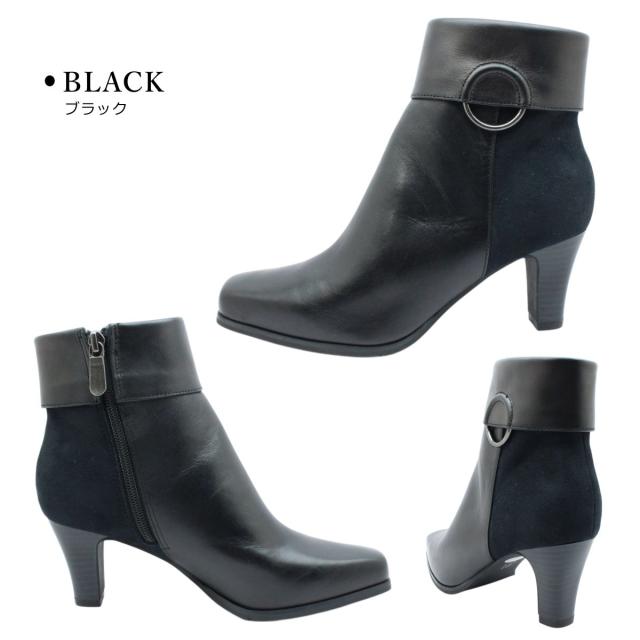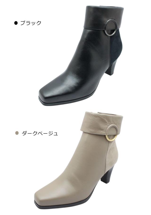 Yukiko Kimijima ユキコ キミジマ レディース ショートブーツ 1028 レザー ファスナー 3E 本革 6.5cmヒール スクエアトゥ ブーティー