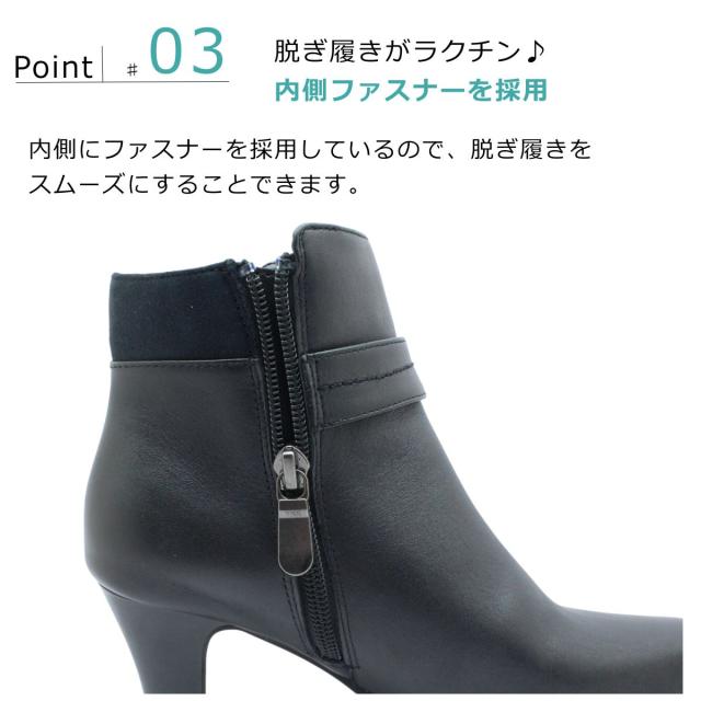 Yukiko Kimijima ユキコ キミジマ レディース ショートブーツ 1035 レザー ファスナー 3E 本革 6.5cmヒール スクエアトゥ ブーティー