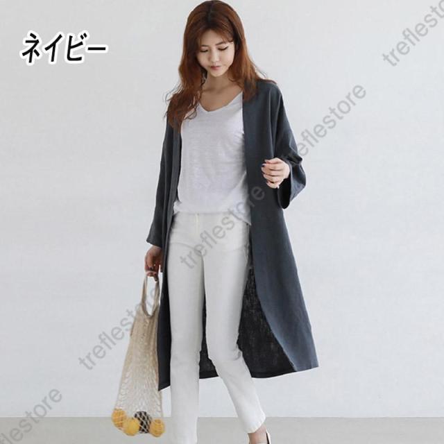 カーディガン コーディガン カーディガン コットンリネン 綿麻混 超ロングカーディガン レディース ライトアウター 春 秋 スプリングコート 羽織り Vネック カーデ ガウン ロング丈 シンプル 春 夏 UVカット 可愛い カジュアル OL 通勤