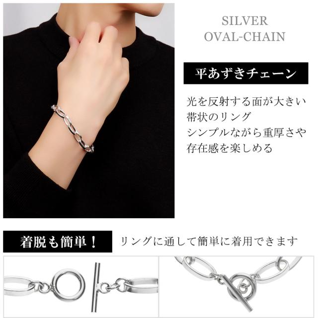 シルバー925 あずきチェーン ブレスレット シルバー マンテル Tバー 18〜21cm シンプル マンテルチェーン あずき 小豆 アズキ トグル トグルクラスプ