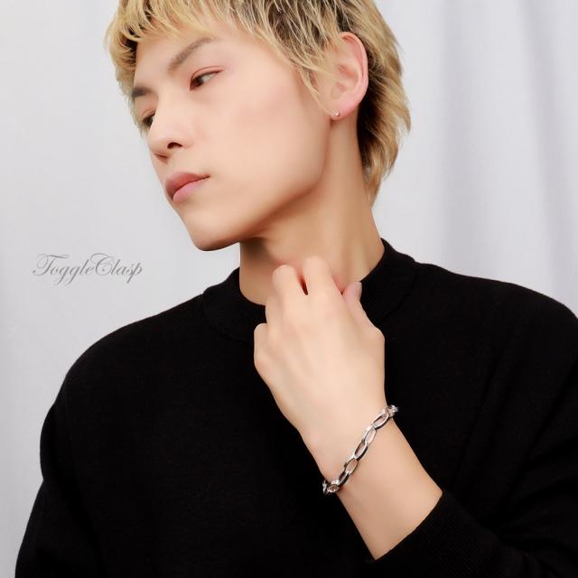 存在感のある留め具がポイント、シンプルさにデザイン性を加えるマンテルブレスです。