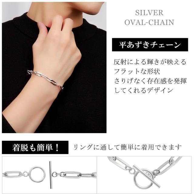 シルバー925 平あずきチェーン ブレスレット シルバー マンテル Tバー 18〜21cm シンプル マンテルチェーン あずき 小豆 アズキ トグル