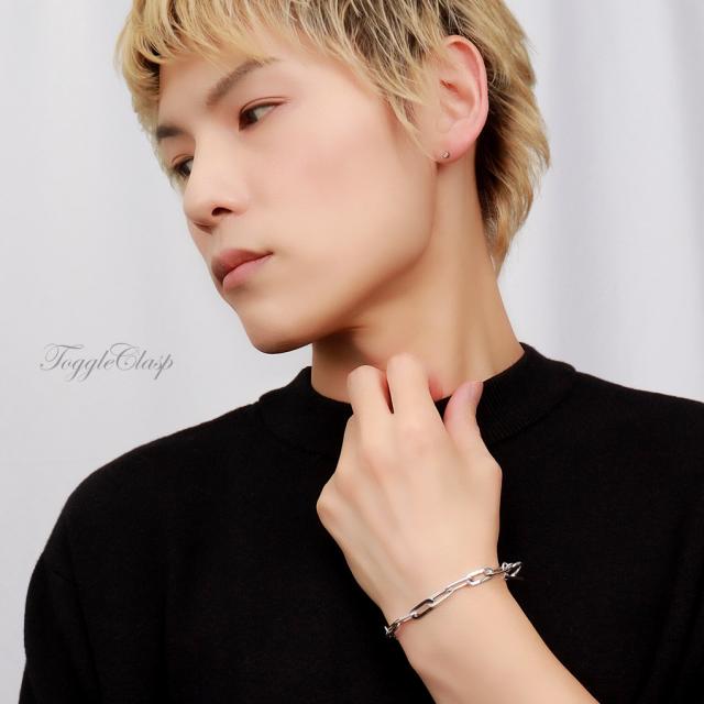 存在感のある留め具がポイント、シンプルさにデザイン性を加えるマンテルブレスです。